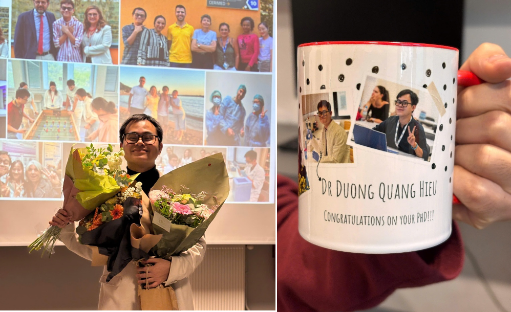 A special thank, I would like to say to my dear mentors and also my sisters, Dr. Le Thi Khanh and Dr. Tran Thi Thom, Love you <3. To work with you as well as being your little brother, I learnt so many things, not only scientific skills but also the way I could overcome depression in life far away from family and friends. I am truly grateful for that. Thank you to Dr. Le Thi Khanh for accepting me to work with a Master-2 internship in the laboratory, even though at that time, you did not know if I could be a good student or a good person. Being your little brother is one of my most lucky. No words can describe exactly what I think because you not only teach me valuable knowledge in science but also support and share with me the difficulties I met in a strange environment. I cannot be here without your help. You are a perfect mentor to me. Thank you very much for your precious support and help, which really made my Ph.D. more convenient. Together, we made many achievements; for me, these are all the first papers (both review and original research). I would like to send a big thank you to Dr. Tran Thi Thom, who taught me a lot of complicated experiments in the laboratory (organoids and microscopy, and flow cytometry), always supported me in experiments that I needed to do for my Ph.D project, and also helped me to do with a lot of administrative work to survive in France. From the things both of you taught me, I could be confident to go for many interviews for postdoc positions all over the world since these are very good skills to do research that I learnt from you (Dr. Khanh and Dr. Thom). Without your help, I could not go as far as I have now. Thank you very much for always listening to and encouraging me, and I would also be sorry if, during the time we worked together, I caused you any uncomfortable moments. Please forgive me :D. I hope every time you think about me, you will feel proud of me as a little brother and a good friend. I would also like to thank your families (bác Thắng, bác Sơn, Phễu, Min, Chun, Ping, Mai Ly) for being nice to me and sharing happy moments with me, which made me not feel lonely in France. I am so lucky!!!